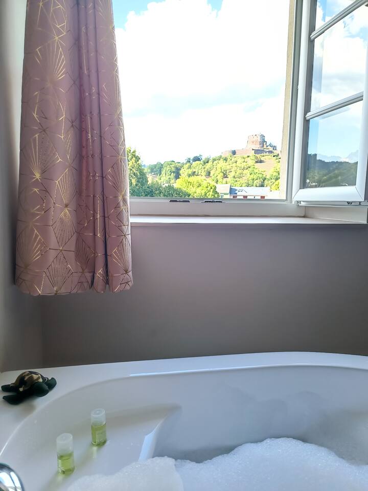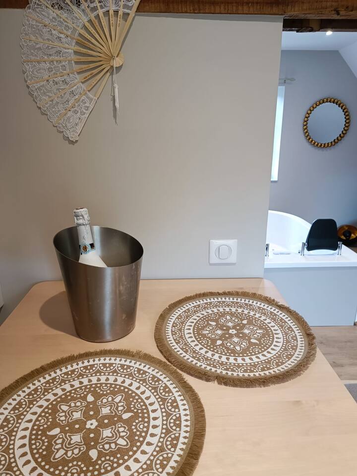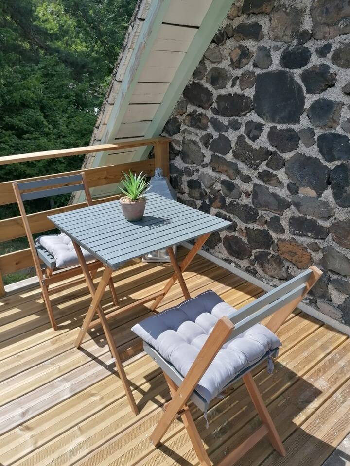Suite de charme, idéalement située à Murol et à proximité de toutes les activités estivales ou hivernales. Chambre équipée d’un lit queen size, d’une baignoire spa deux places, d’une kitchenette. Idéale pour une soirée ou escapade en amoureux. Terrasse privative. Bouteille de bienvenue offerte, petit déjeuner compris. Possibilité de commander un encas pour la soirée.